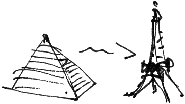 | Au cours de son histoire l’homme a toujours construit en fonction des matériaux à disposition et par rapport à ses connaissances. Si la pyramide de Chéops en Egypte (2560 av.J.C.) utilise la pierre qui travaille exclusivement en état de compression, la tour Eiffel (1888-’89) utilise l’acier qui résiste également en traction et en flexion. L’acier, dont les propriétés permettent de créer des structures élancées, nécessite de la prise en compte de phénomènes complexes tels que les instabilités et les vibrations. Une connaissance approfondie permet d’exploiter les caractéristiques spécifiques d’un matériau et les méthodes de calcul sophistiquées sont nécessaires pour gérer la complexité et développer des solutions de plus en plus efficaces. Construire une structure implique non seulement l’utilisation de la matière mais aussi du temps pour la mettre en forme : produire, transporter, assembler, ériger sont les actions qui nous conduisent à la matérialisation du dispositif statique. |
