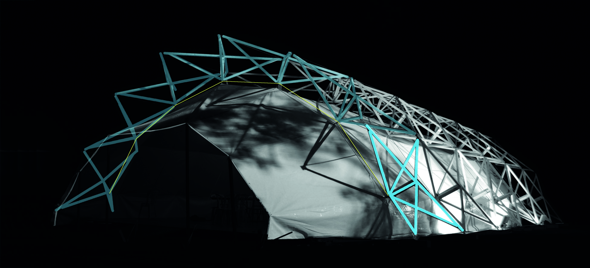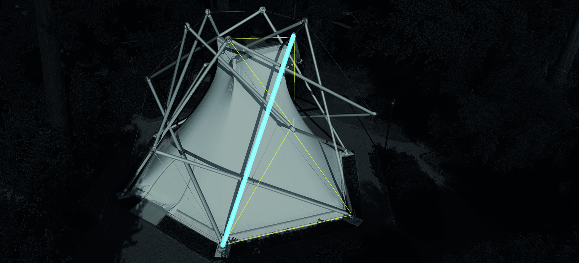 Pavillon de Penthes Salle à manger en structure tensegrité pneumatique, château de Penthes, Genève |